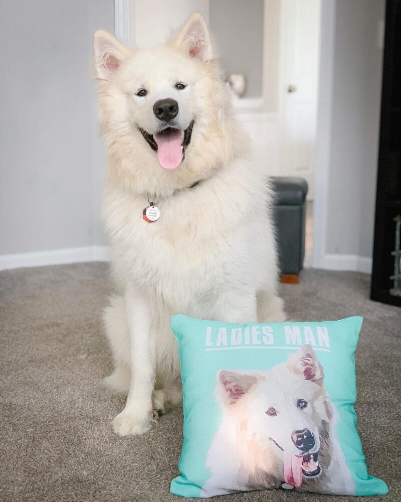 Tie the room together with accent pillows that will warm both your heart and your decor. Doggo not included.