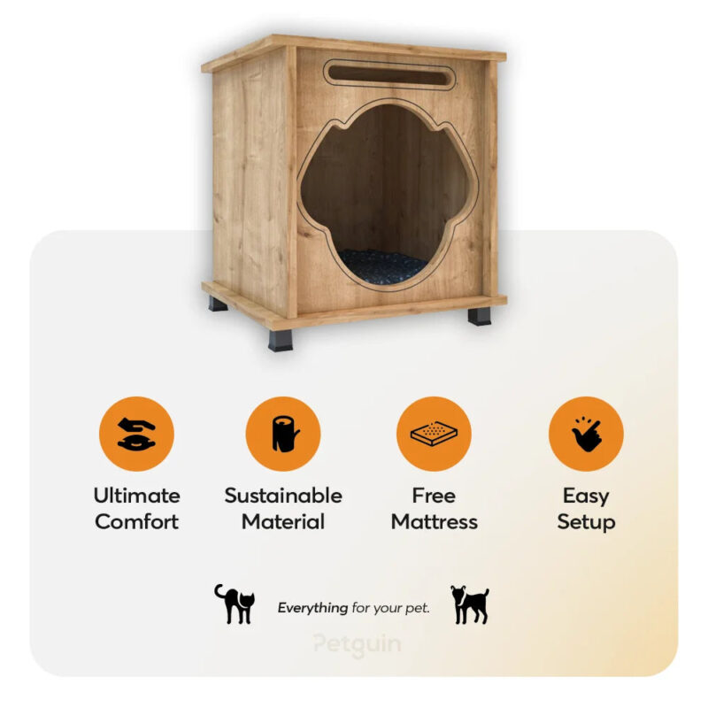 – You don’t need to buy an extra bed for your dog! Also, use this product as a wooden dog bed.